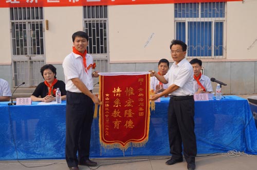 9月20日下午,秋高氣爽、陽(yáng)光明媚,膠南市黃山經(jīng)濟(jì)區(qū)希望小學(xué)落成儀式在學(xué)校大操場(chǎng)隆重舉行。激昂的國(guó)歌聲后,少先隊(duì)員們?yōu)槌鱿I(lǐng)導(dǎo)敬獻(xiàn)紅領(lǐng)巾,以此來(lái)表達(dá)孩子們的崇高敬意。一位學(xué)生代表用稚嫩的童音道出了對(duì)青島海川建設(shè)集團(tuán)及支持希望工程事業(yè)建設(shè)的各類(lèi)愛(ài)心團(tuán)體的誠(chéng)摯感謝,和臺(tái)下上千名含苞待放,映襯在陽(yáng)光里的一張張幸福笑臉一樣,他們都是祖國(guó)的未來(lái)和希望,也讓在場(chǎng)的每一位成年人對(duì)“捐資助教、功德無(wú)量”這句話(huà)有了更深刻的理解和感悟。黃山經(jīng)濟(jì)區(qū)希望小學(xué)校長(zhǎng)懷著激動(dòng)地心情向海川集團(tuán)贈(zèng)送錦旗一面,愛(ài)心助學(xué)的善舉也贏得了在場(chǎng)師生一次又一次熱烈的掌聲。集團(tuán)黃中坡副總裁代表發(fā)言,他特別指出,今年恰逢集團(tuán)成立60周年之際,本著“節(jié)儉辦大慶”和“注重社會(huì)公益性”的宗旨,集團(tuán)將主要活動(dòng)資金拿出來(lái)援建黃山經(jīng)濟(jì)區(qū)中心小學(xué),另外發(fā)動(dòng)企業(yè)職工向老一輩建筑人曾經(jīng)援建過(guò)的四川藏族甘孜地區(qū)捐獻(xiàn)衣物。通過(guò)一系列與社會(huì)接軌的主題活動(dòng),力爭(zhēng)將本次大慶辦得更有意義。最后他衷心希望膠南市黃山經(jīng)濟(jì)區(qū)中心小學(xué)的全體同學(xué)從小樹(shù)立遠(yuǎn)大目標(biāo),刻苦學(xué)習(xí),努力向上,爭(zhēng)做國(guó)家棟梁之才,立志回饋社會(huì),報(bào)效祖國(guó)。青島團(tuán)市委副書(shū)記張海軍和膠南市委副書(shū)記佟海燕也出席儀式并與海川集團(tuán)黃中坡副總裁一起為希望小學(xué)揭牌,同時(shí)就海川集團(tuán)對(duì)教育公益事業(yè)的傾情參與和大力支持給予了充分肯定和高度評(píng)價(jià)。