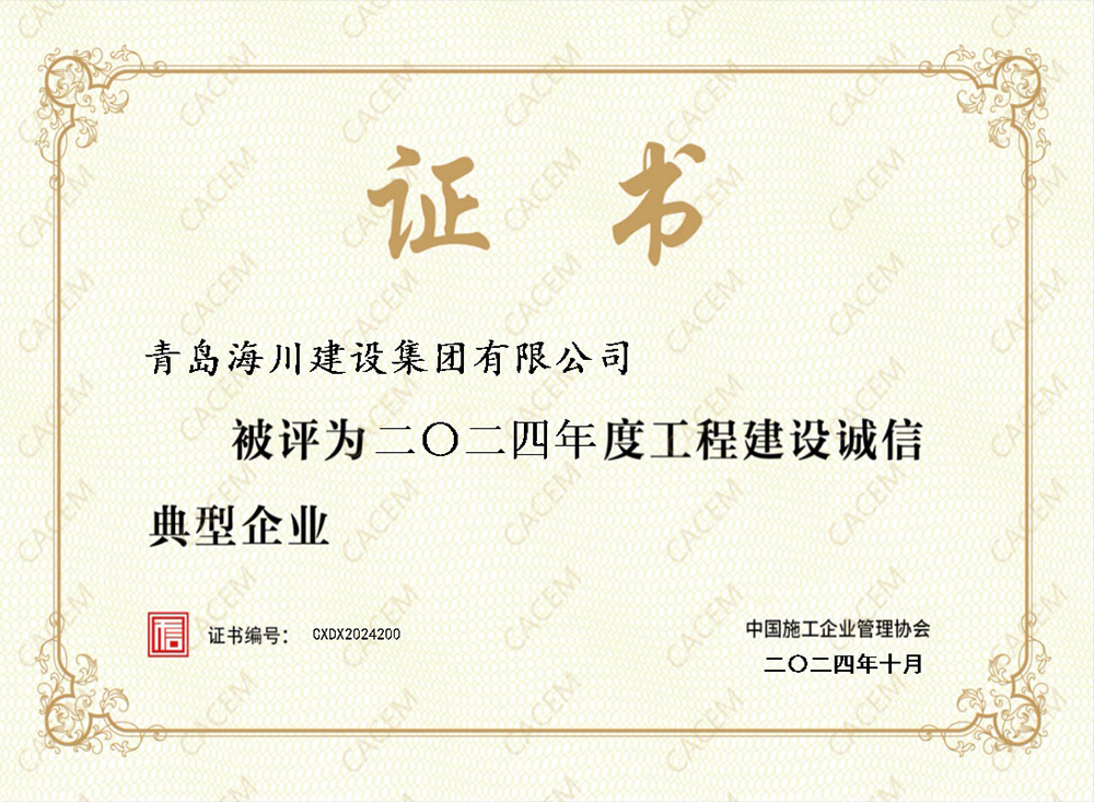 青島海川建設(shè)集團(tuán)榮獲工程建設(shè)誠信典型企業(yè)等多項榮譽2024-10-31為全面推進(jìn)工程建設(shè)行業(yè)信用體系建設(shè),樹立誠信建造品牌,營造良好信用環(huán)境,中國施工企業(yè)管理協(xié)會繼續(xù)開展本年度工程建設(shè)誠信典型企業(yè)評估工作,經(jīng)企業(yè)申報、評選、公示、公布,青島海川建設(shè)集團(tuán)有限公司成功獲評工程建設(shè)誠信典型企業(yè)榮譽,連續(xù)5年榮獲此殊榮。在中國施工企業(yè)管理協(xié)會開展... -