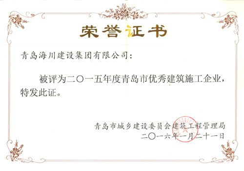 海川集團被評為2015年度青島市優(yōu)秀建筑施工企業(yè)