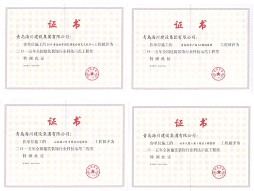 海川集團(tuán)捧回全國建筑裝飾行業(yè)4項“科技示范工程”和4項“科技創(chuàng)新成果”證書、獎牌
