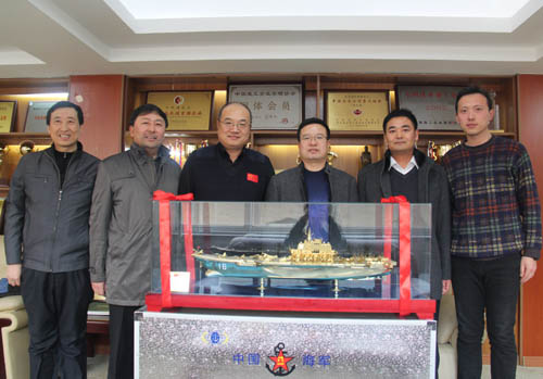 海川集團與72695部隊簽訂軍民共建協(xié)議已有10個年頭。3月11日下午,在公司與軍民共建單位72695部隊進行的一次聯(lián)誼活動中,部隊贈送給公司一艘“遼寧艦”航母模型,寓意祝愿企業(yè)做大做強。吳鑫董事長和仇建軍總裁在公司榮譽室接受贈品航模,并與身著便裝的周愛民政委(右三)和政治處李文清主任(右二)合影。