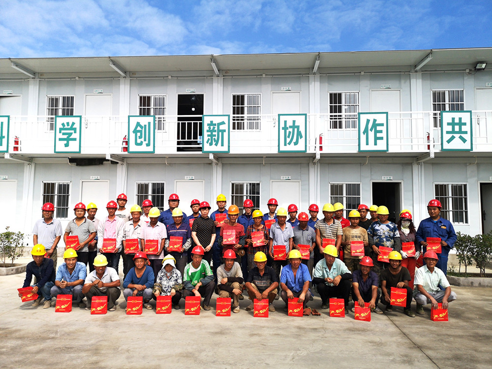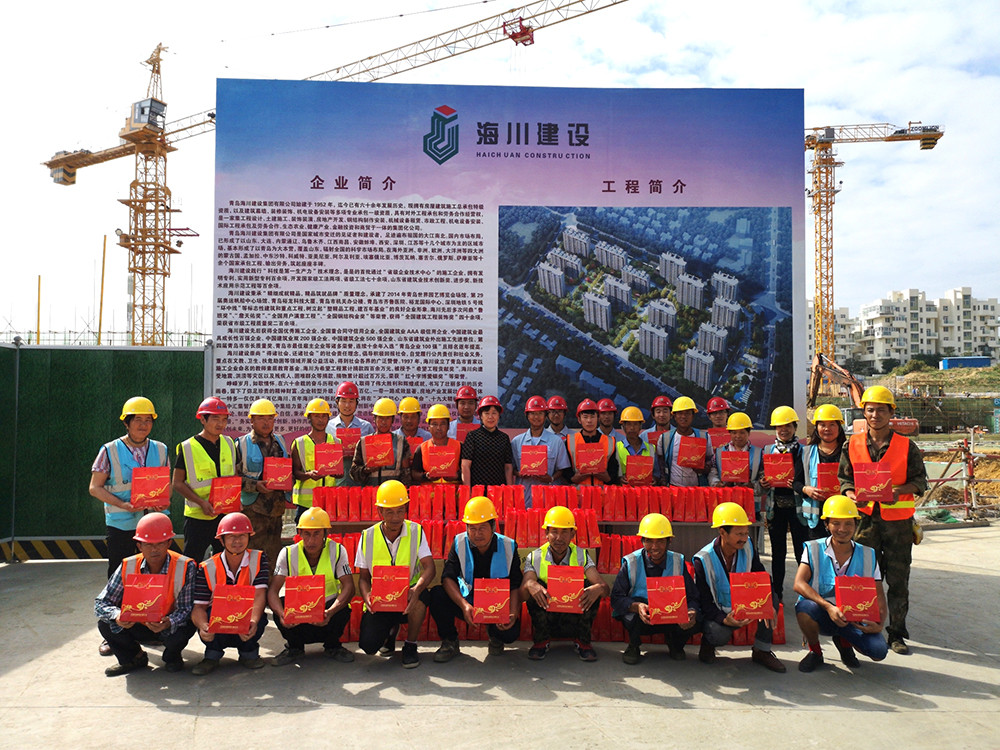 桂花盛開迎團圓,月到中秋分外明。中秋佳節(jié)是與家人團圓的日子,但是海川建設(shè)的許多員工卻依然奮戰(zhàn)在海外項目和施工一線。為此,中秋佳節(jié)前夕,海川建設(shè)集團工會來到即墨天泰·天空之城項目部、西溫泉社區(qū)安置區(qū)二期(C地塊)項目部、市北區(qū)長沙路人才公寓項目部等在建工地為節(jié)日期間仍然工作在一線的廣大員工送去集團的關(guān)心和祝福。