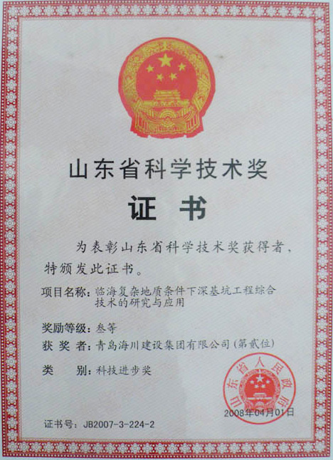 山東省科學證書